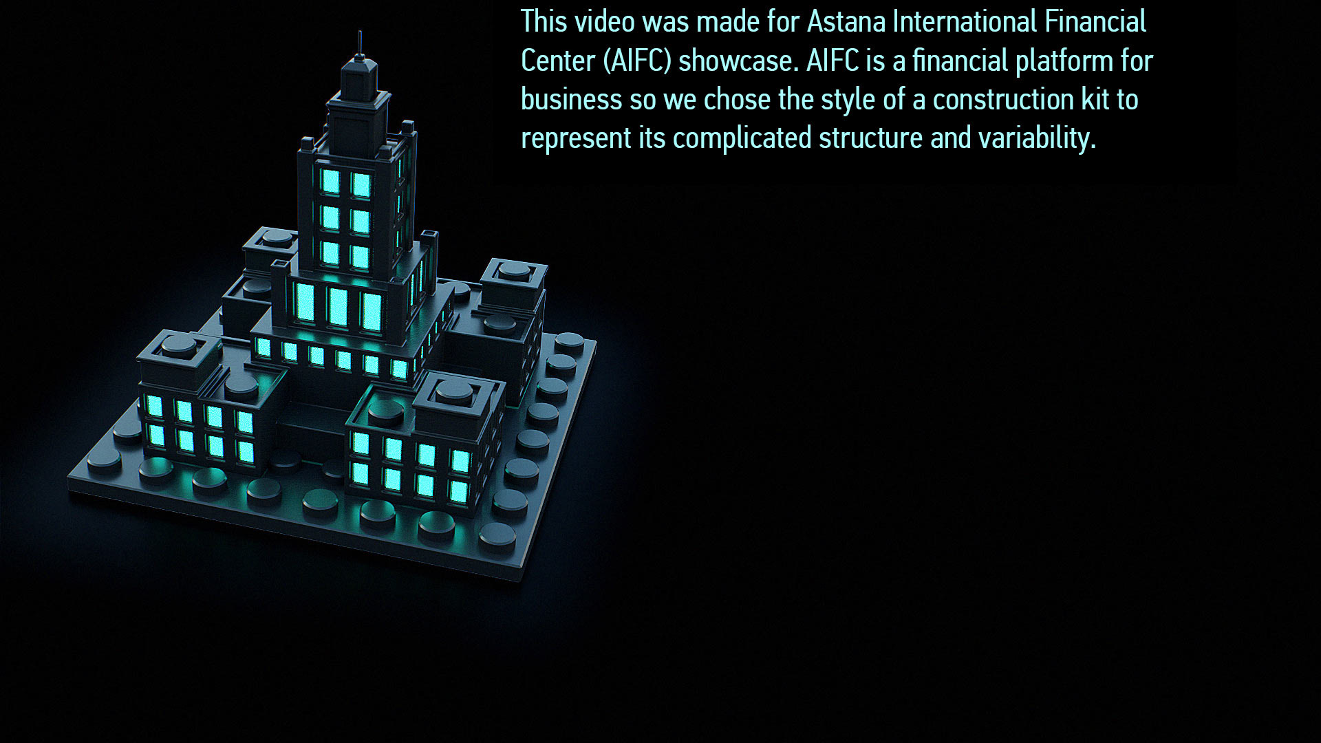This video was made for Astana International Financial Center (AIFC) showcase. AIFC is a financial platform for business so we chose the style of a construction kit to represent its complicated structure and variability.